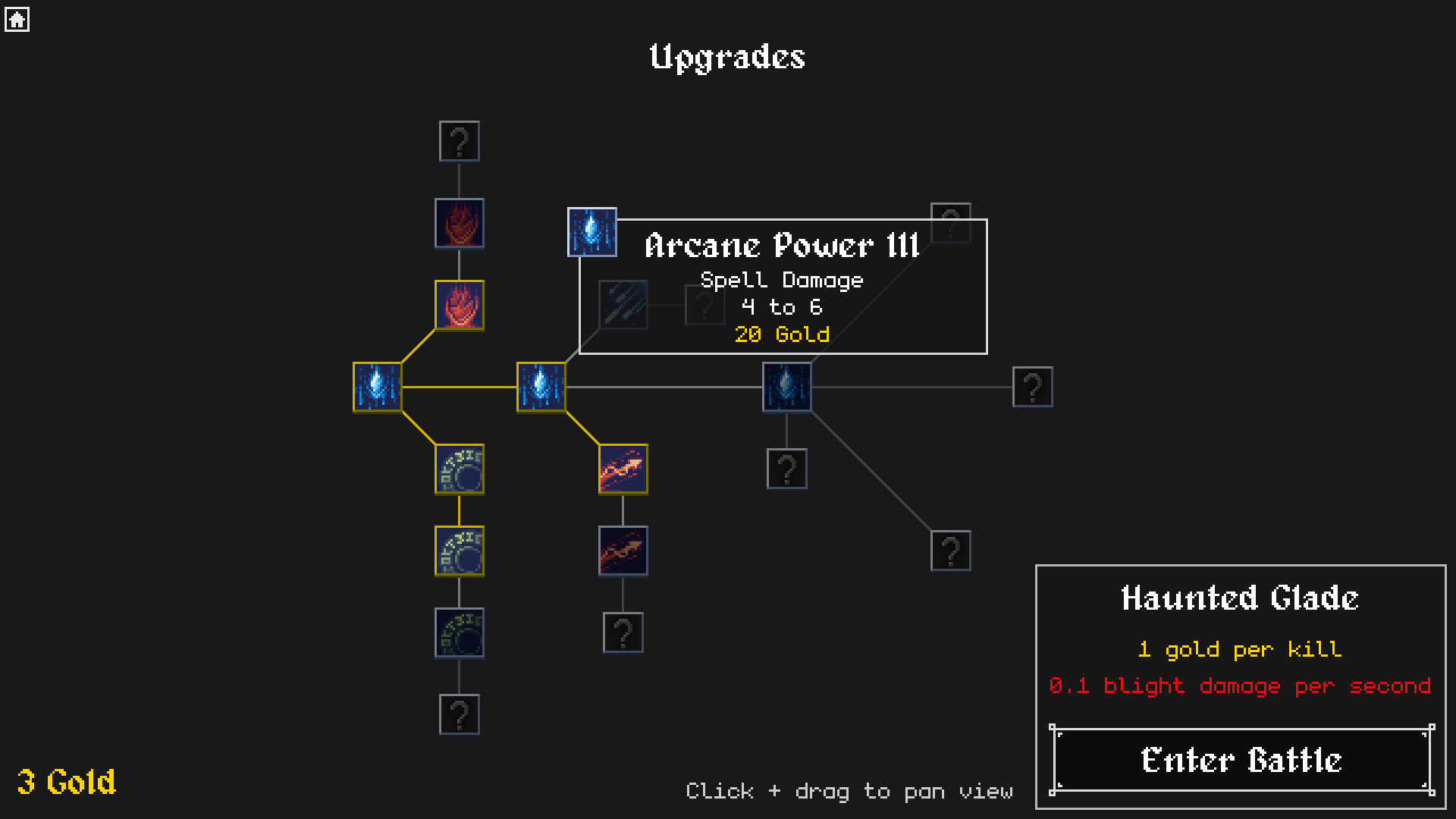 I'd love to see an addition of something in the nature of a powerful spell (or multiple different ones) that have longer cooldowns. Feels like the kind of thing to give it a bit more depth. Plays very nice even as is though. Digging what you've got so far!